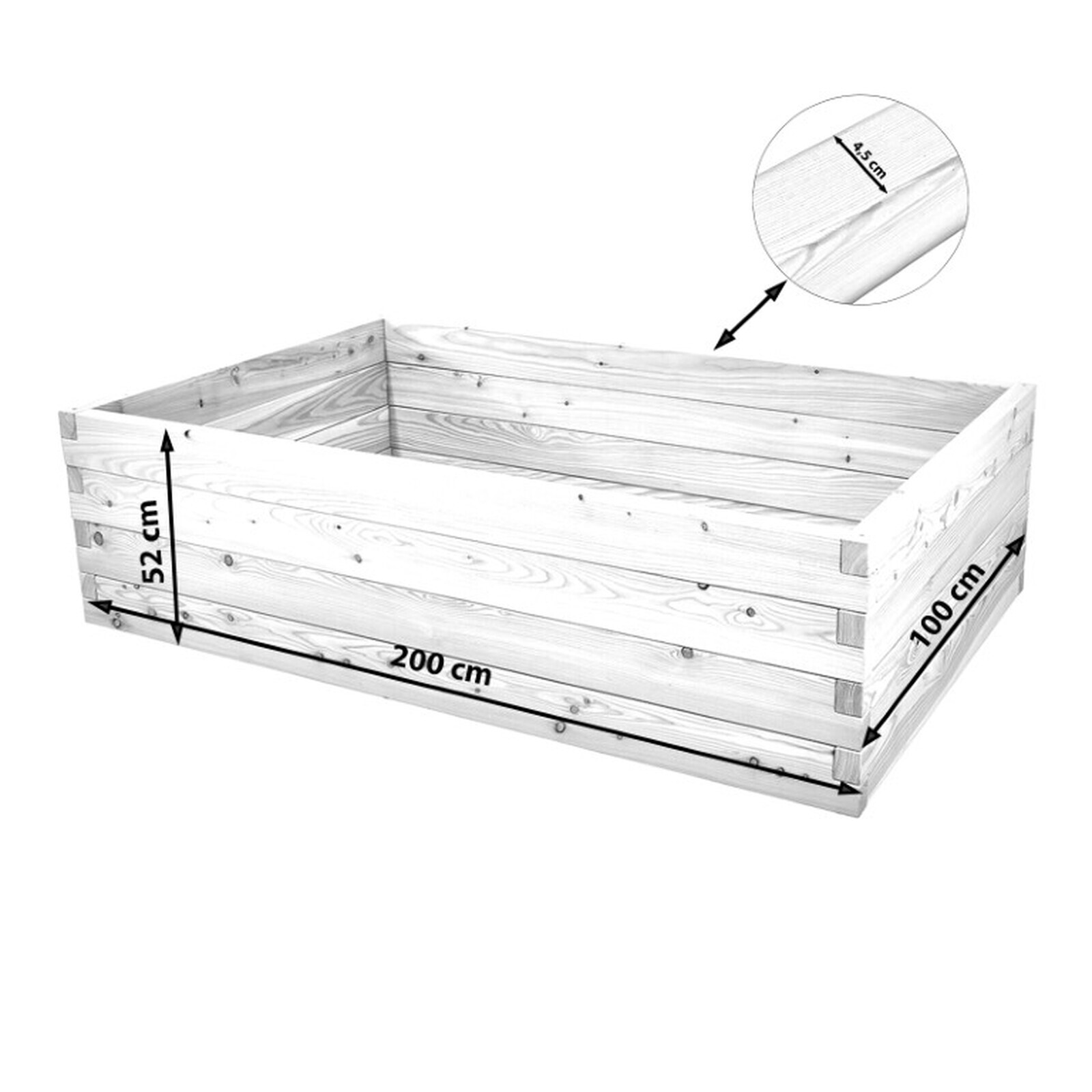 Das Hochbeet "Douglasie" von Gartenallerlei mit den Maßen 200cm x 100cm x 52cm ist die perfekte Lösung für Ihren Garten. Das Hochbeet ist aus robustem Douglasienholz gefertigt, dass eine Bohlenstärke von 45mm aufweist.