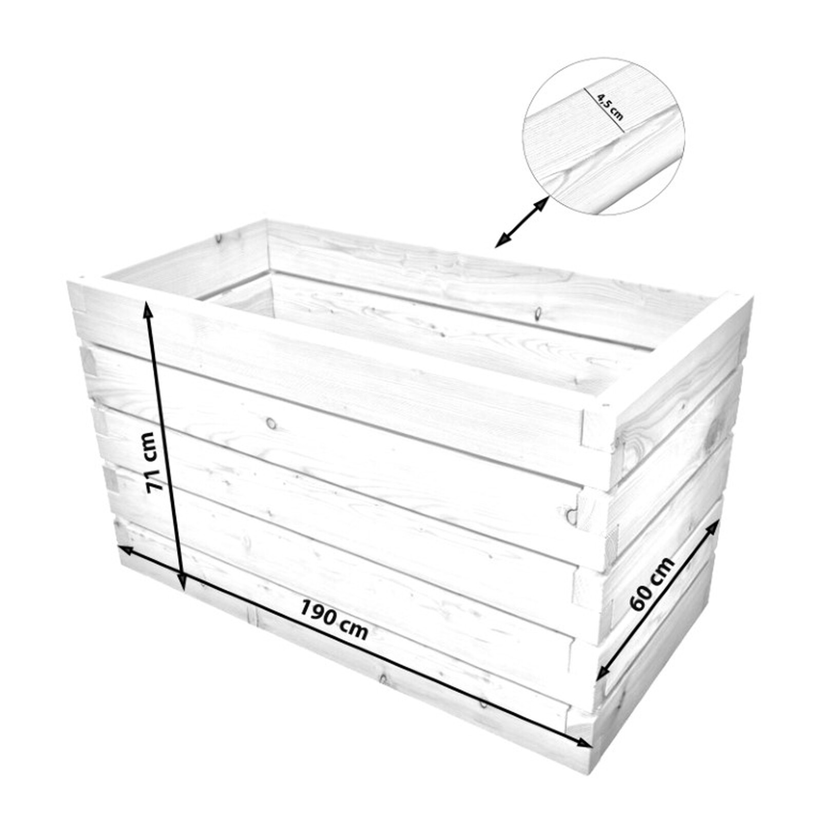 Das Holzhochbeet Lacuna besteht aus stabilen 4,5 cm starken Lärchenholzdielen. Die Abstände zwischen den Bohlen bieten eine optimale Belüftung und sind darüberhinaus zeitlos schick. Garantiert ein Hingucker in ihrem Garten!