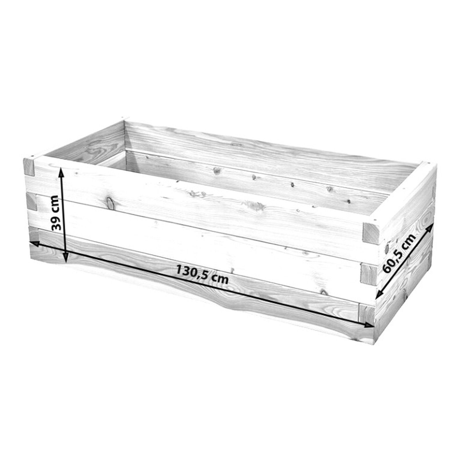 Dieses Komplettset ermöglicht Ihnen den Aufbau eines Hochbeetes mit einer Grundfläche von 130,5cm x 60,5cm und einer Höhe von 39cm.