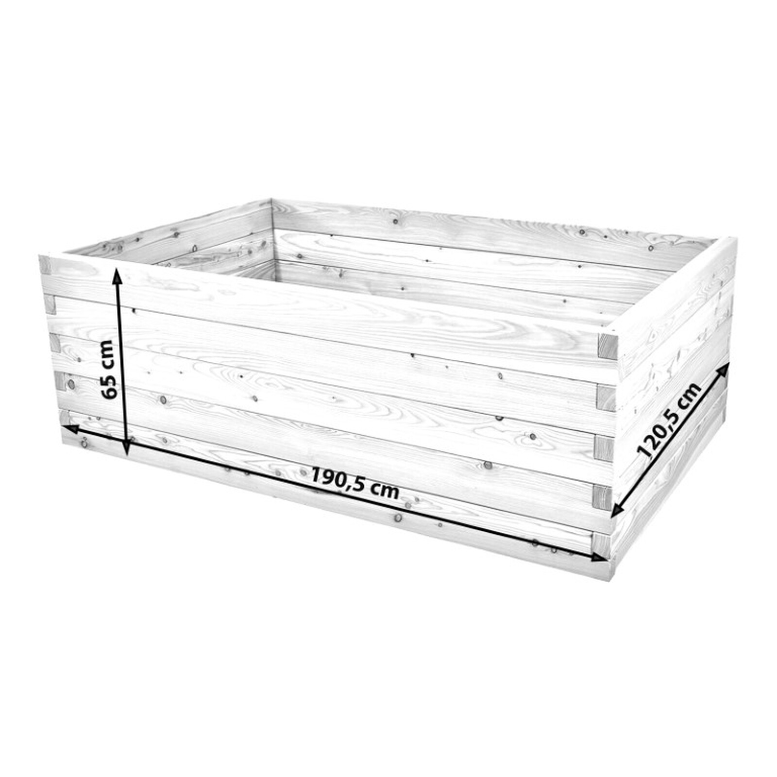 Dieses Komplettset ermöglicht Ihnen den Aufbau eines Hochbeetes mit einer Grundfläche von 190,5cm x 60,5cm x 65cm (BxTxH).