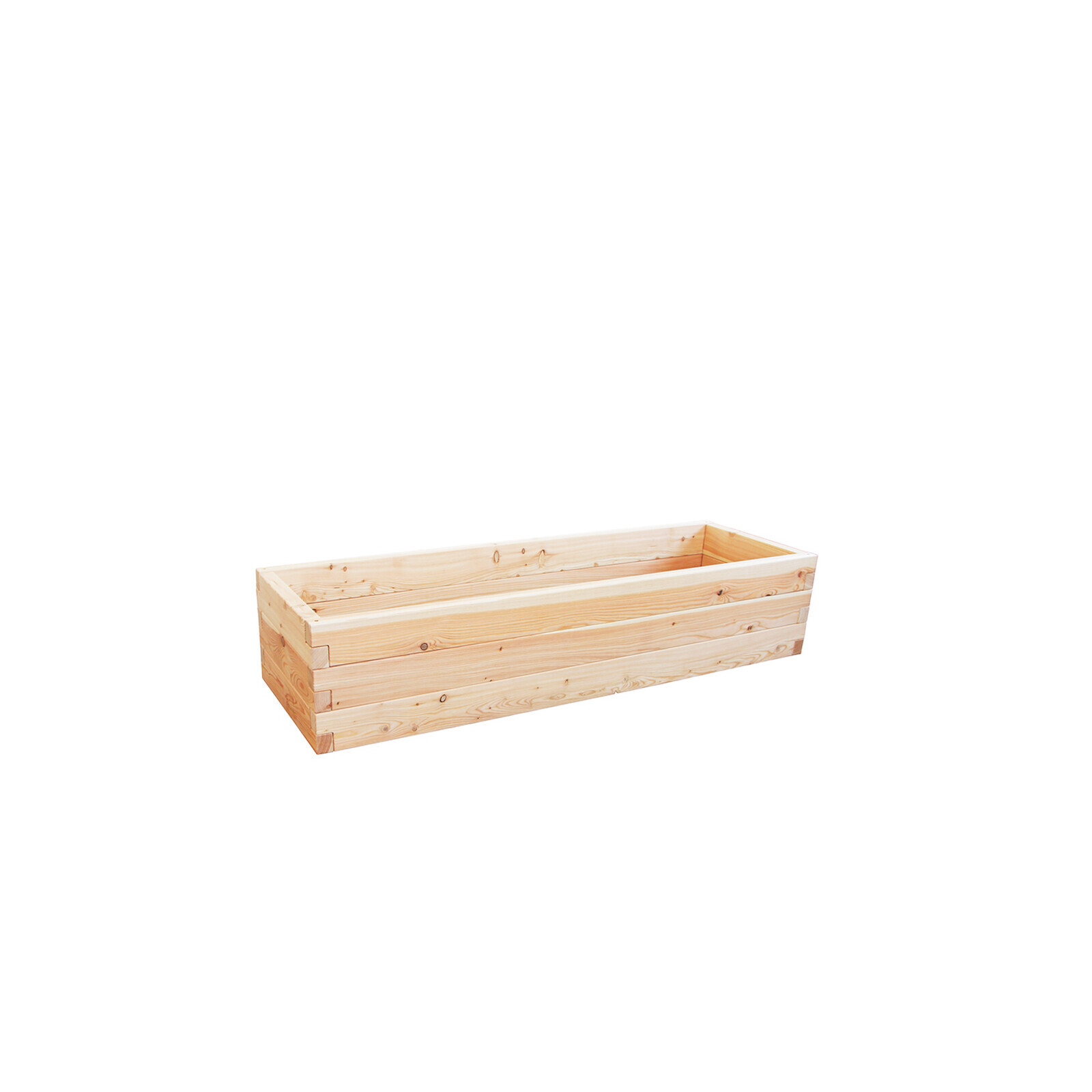 Dieses große, schmale Holzhochbeet aus besonders massiven Lärchenhölzern mit einer Dicke von 4,5cm hält der Witterung circa 10 Jahre stand, auch ohne einen zusätzlichen Schutz durch Noppenfolie oder Öl. Das Hochbeet wird aus gehobeltem Lärchenholz gearbeitet. Die Kanten sind zusätzlich gefast (abgerundet), es bleiben also keine scharfen oder ausgefranste Ränder an den Hölzern.